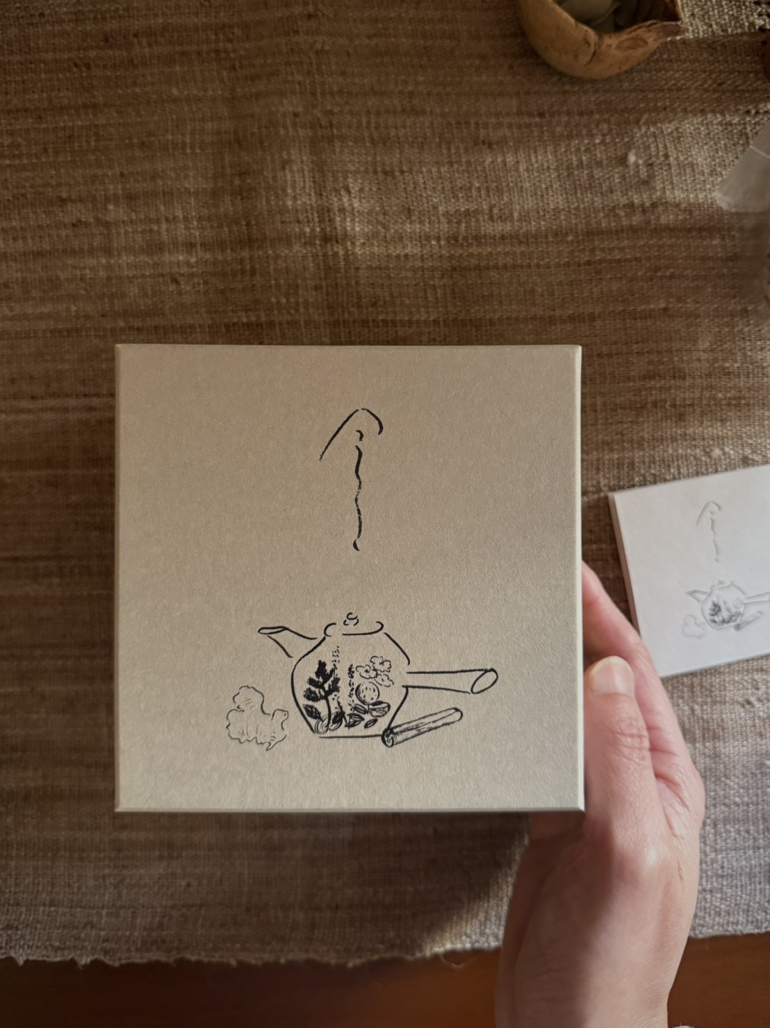 お箱ではなく、素敵な紙のスリーブに薬膳茶(24g)をセットして販売します。